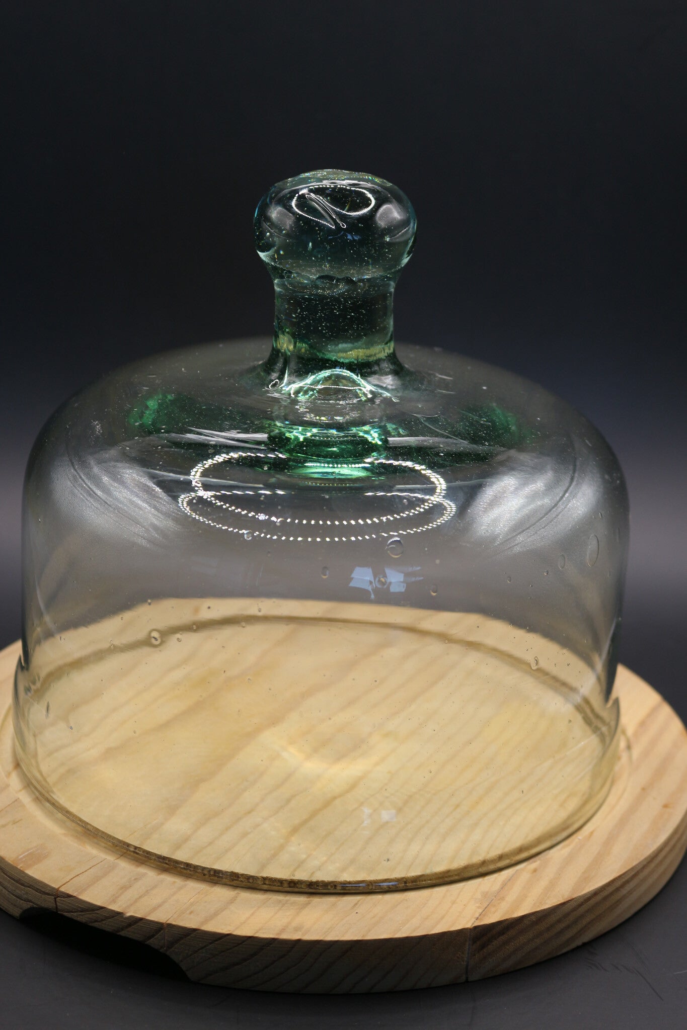 Kaasstolp op houten plankje.
